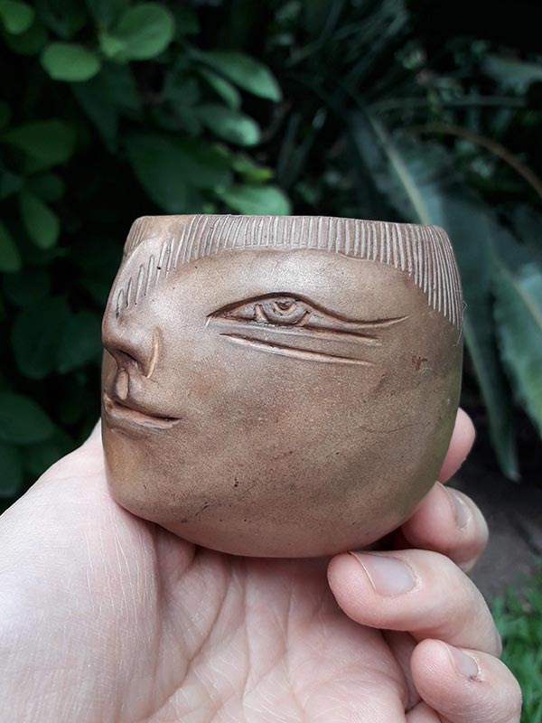 Mate negro modelado inspirado en los rostros de las vasijas del NOA.