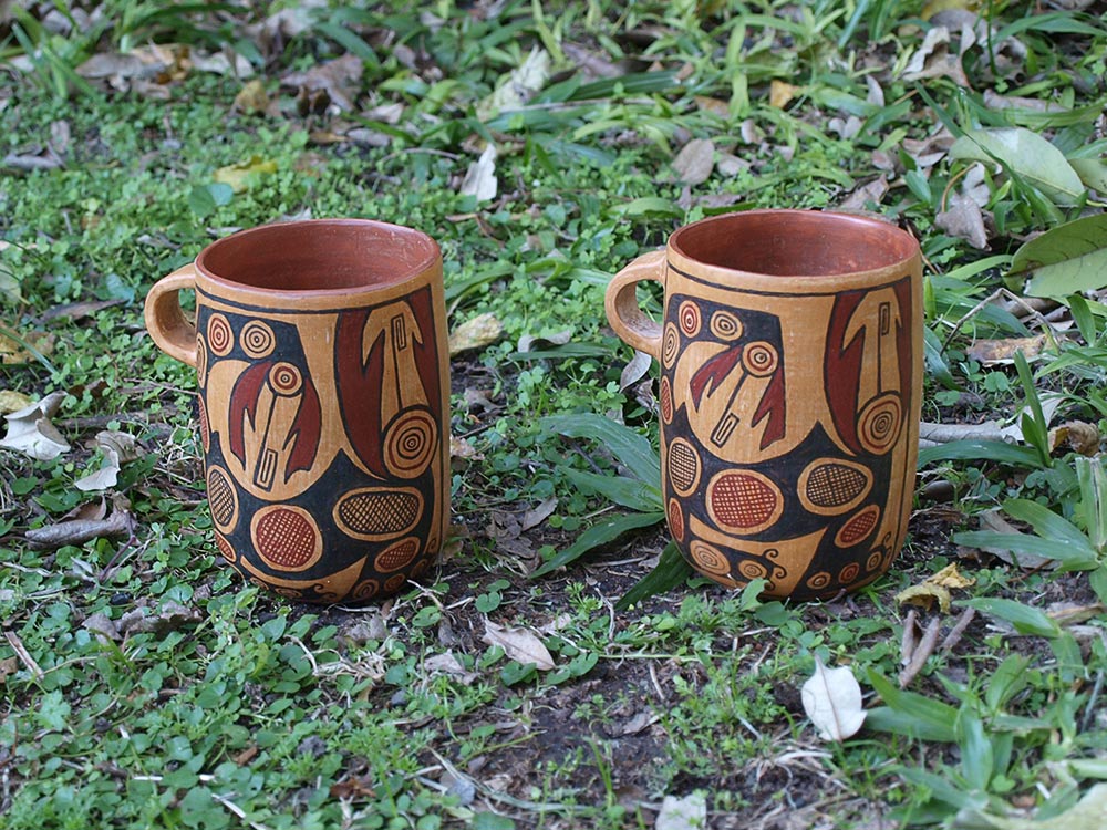 Tazas pintadas y esgrafiadas con motivos nazca. Perú.